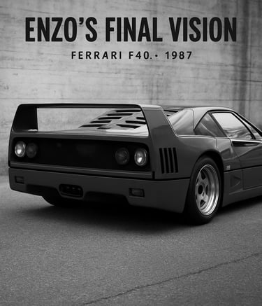 Introduced in 1987, it was built to celebrate Ferrari’s 40th anniversary, and became the last model personally approved by Enzo Ferrari. Lightweight, raw, and uncompromising, the F40 represented pure racing philosophy on the road